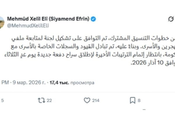 Сопредседатель Партии народного равенства и демократии народов (ПНРД) Тунджер Бакырхан провёл телефонный разговор с президентом...