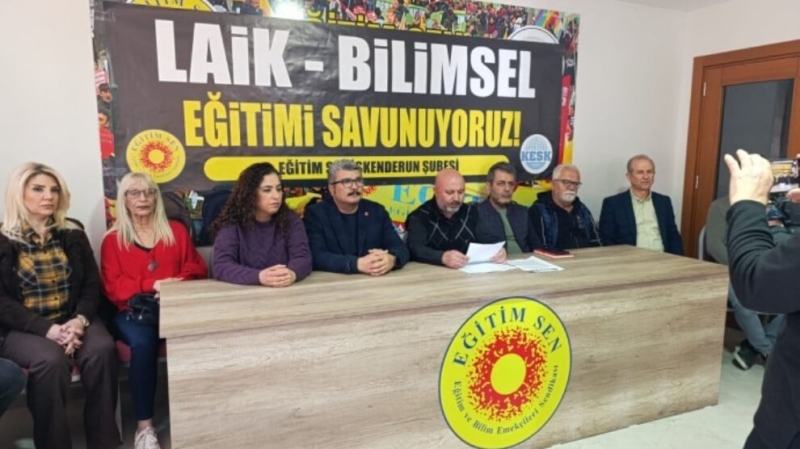 Отделение профсоюза Eğitim Sen в Искендеруне выступило с заявлением на ту же тему в стенах своего офиса. Председатель отделения Мустафа Унсал, зачитывая текст обращения, сказал: «Мы уважаем чувства верующих, и никто не вправе утверждать обратное. Но мы не будем молча смотреть, как вы перечеркиваете светский строй, превращаете школы в молельни и делаете образование инструментом религиозной политики. Мы и впредь будем стоять за светское и научное образование».